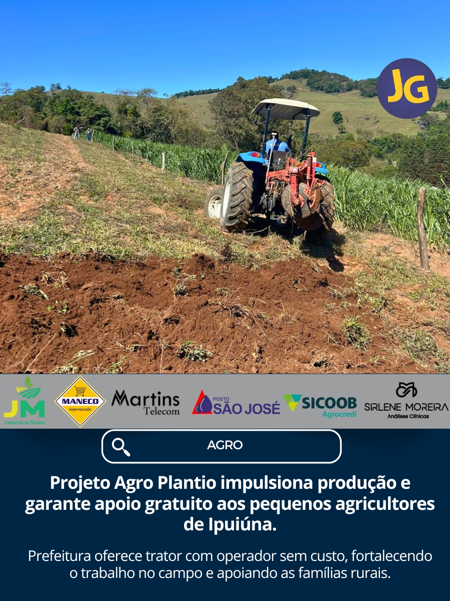 Com o objetivo de fortalecer a agricultura familiar e garantir melhores condições de trabalho ao homem do campo, a Prefeitura de Ipuiúna, por meio da Secretaria Municipal de Agricultura, desenvolve o Projeto Agro Plantio. A iniciativa disponibiliza, gratuitamente, o serviço de trator e tratorista para preparo do solo em áreas de até um alqueire, atendendo os pequenos produtores do município.