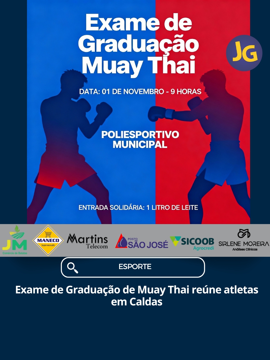 O Poliesportivo Municipal de Caldas será palco, no dia 1º de novembro, a partir das 9h, do Exame de Graduação da Equipe Team Cleber Lima. O evento contará com a presença especial do mestre Fabiano Ferreira, representante da Associação Fabiano Ferreira de Muay Thai (AFFMT).
