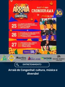 Enquanto isso, a cidade de Congonhal também entra no clima com o Arraiá de 2025, realizado na Praça Central, de 25 a 27 de julho. A festa contará com apresentações do projeto Prata da Casa, destacando talentos locais, além de atrações como Olavo e André, Beth Bacana, Giovanna e Geninho, Marcos Paulo & Marcelo e muito mais.