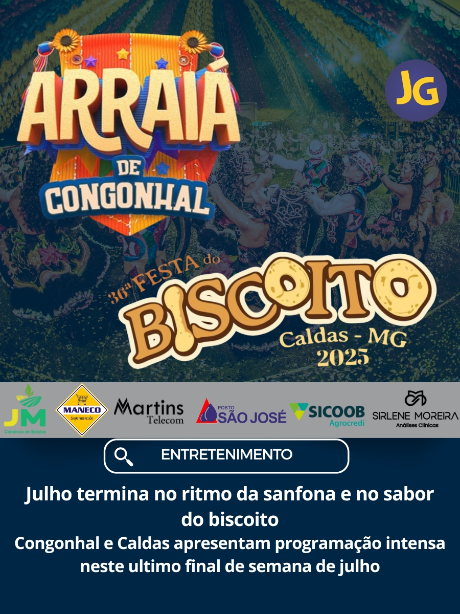 Cidades da região estão em clima de festa e tradição! Este final de semana promete ser especial com o encerramento da 36ª Festa do Biscoito, em Caldas, e a realização do Arraiá de Congonhal 2025, dois eventos típicos de julho que celebram a cultura, a música e os sabores da região.
