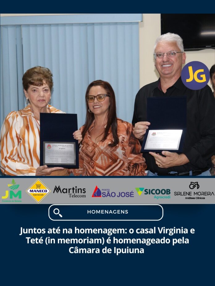 Enfim, um casal que, mesmo com todas as dificuldades de qualquer relacionamento, teve a força presente em suas vidas um sinal comum, e que os une até mesmo após a morte de um dos seus membros, quando Virginia recebeu nesta segunda-feira, 02/02, na Câmara de Ipuiuna, uma moção de aplauso destinada a ela, e outra ao marido, representado pelo filho Ronaldo.