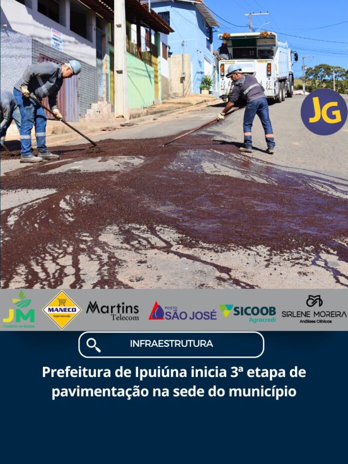 A Prefeitura de Ipuiúna iniciou nesta terça-feira, 17/06, a terceira etapa das obras de pavimentação em ruas da sede do município. Nesta fase, os serviços contemplam trechos dos bairros Jardim América, Mococa e a Baixada do Arlindo, regiões que concentram atualmente os pontos mais críticos.